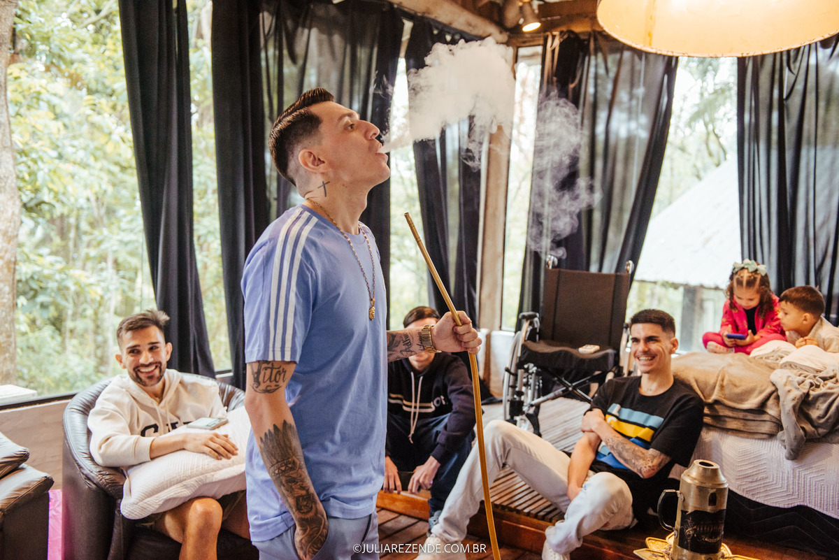 Este casamento destacou-se por seus momentos únicos e vibrantes, desde a presença de um tatuador, que trouxe um elemento surpreendente e divertido à festa, até a calorosa participação de amigos e familiares. As fotos, capturadas com serenidade e um olhar atento aos detalhes, refletem a beleza e a emoção vividas por todos.