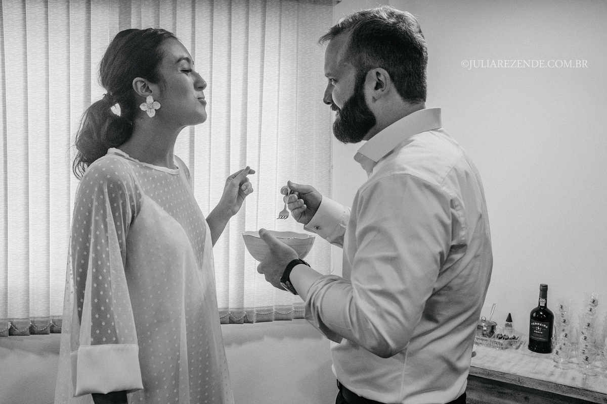 Claro que Juliana e Victor terão um festão, mas era desejo deles casar na igreja, com a bênção do padre que os conhece há tempos. Eles terão o casamento no campo do jeito que sonham, mas não abriram mão de uma cerimônia íntima e um almoço delicioso no salão de festas do prédio, com familiares e amigos queridos.