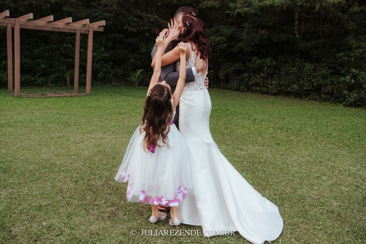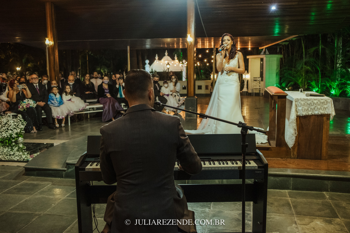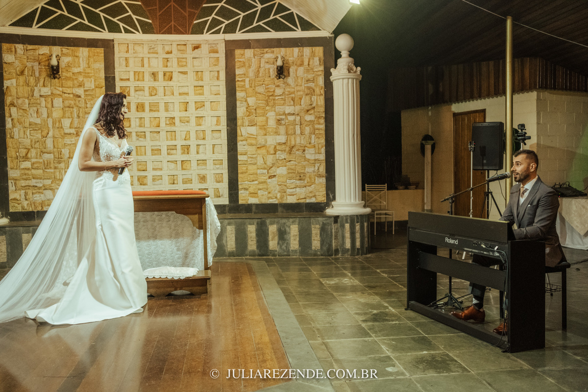 O evento contou com o emocionante "first look", aquele momento mágico em que o casal se vê pela primeira vez antes da cerimônia. Este toque moderno adicionou uma camada extra de intimidade e emoção ao dia. Mas o que realmente destacou esse casamento foi a música de amor cantada pelo casal após os votos. Uma demonstração tão sincera de amor e conexão não é algo que se vê todos os dias.