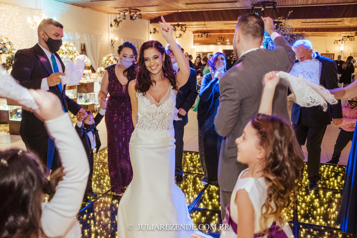 A valsa dos noivos foi um espetáculo à parte, seguida de abraços calorosos entre familiares e amigos, simbolizando a união de duas culturas. As fotografias capturaram não apenas a beleza, mas também a essência do amor e da gratidão que permeava o ambiente.