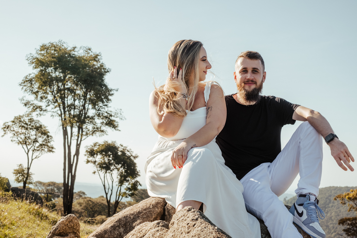 Tive o privilégio de realizar um ensaio fotográfico deslumbrante para Camila e Michel no topo do Pico do Olho D'água, um local que oferece uma vista panorâmica deslumbrante, especialmente durante o pôr do sol. O sonho de Camila de ter um ensaio ao ar livre, imersa nas cores quentes e vibrantes do entardecer, tornou-se realidade.