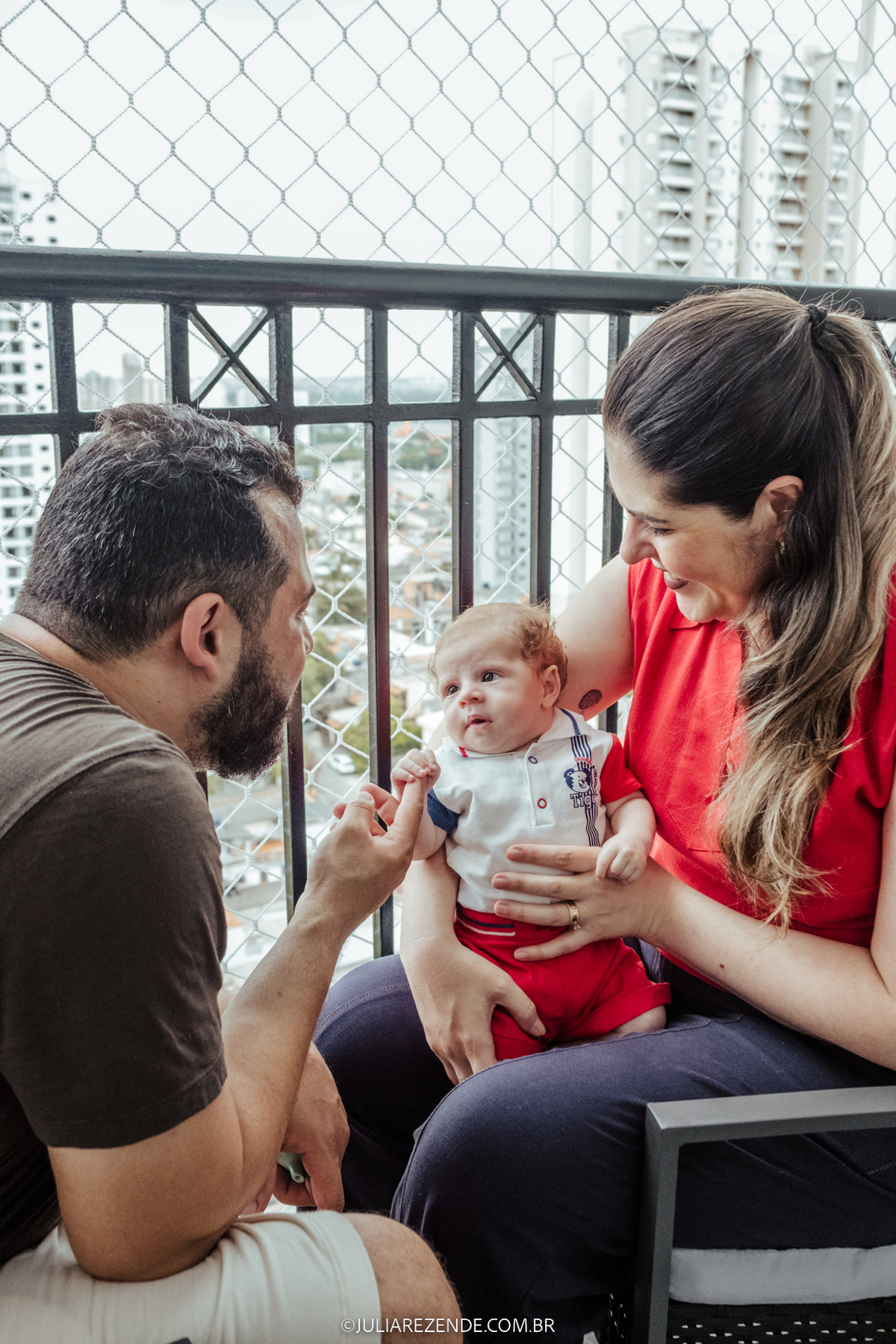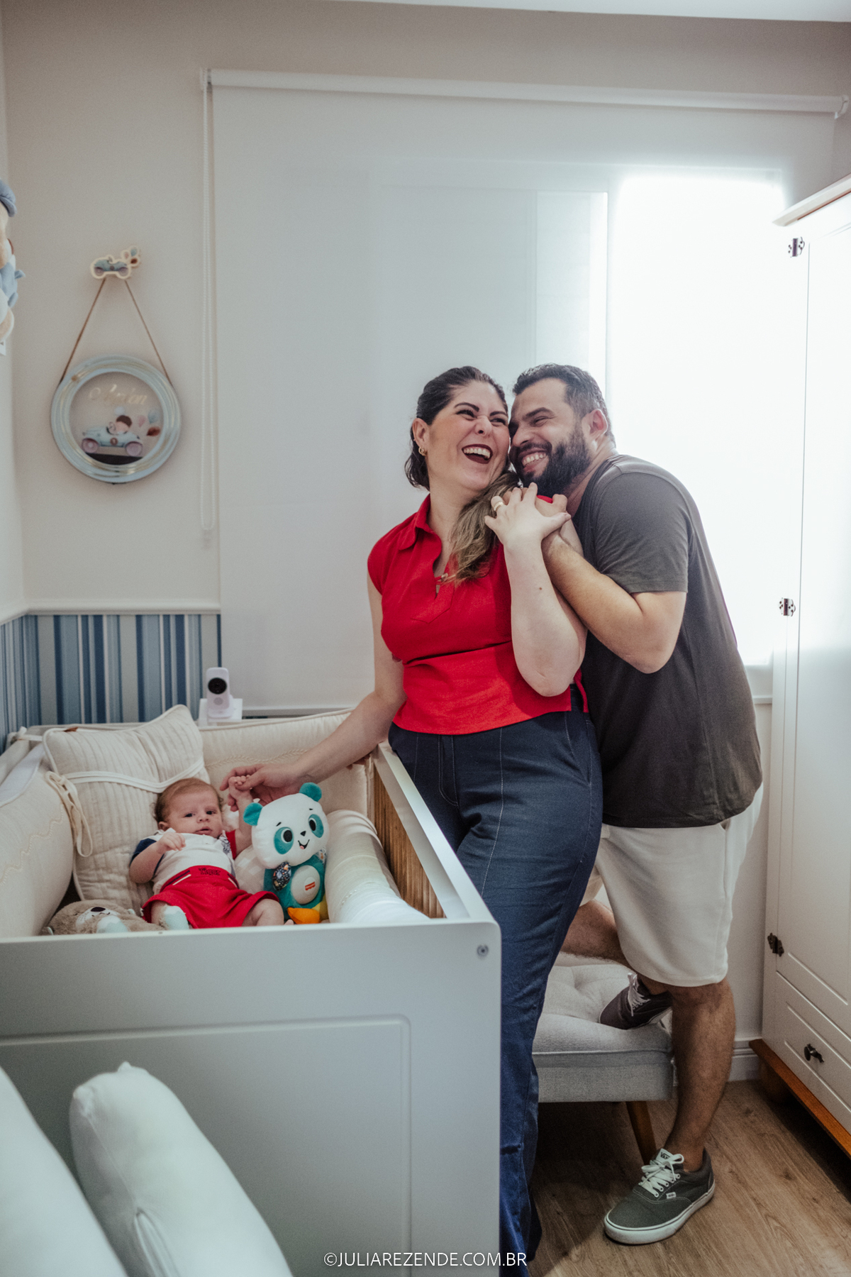 O ensaio de três meses de Ayrton, realizado na casa da família, é uma representação doce e autêntica de seu desenvolvimento e da alegria contagiante de seus pais. Cada imagem capturada é um lembrete precioso da rápida passagem do tempo e da importância de cada fase da vida.