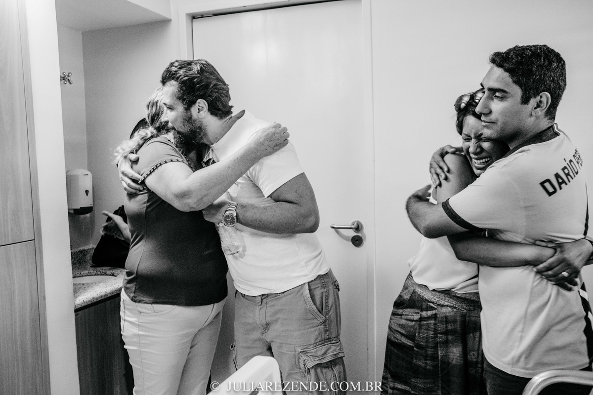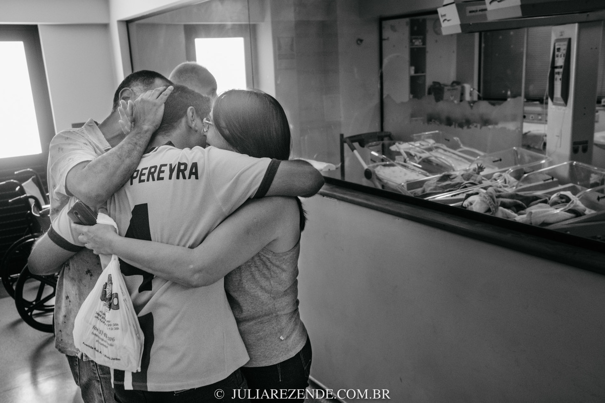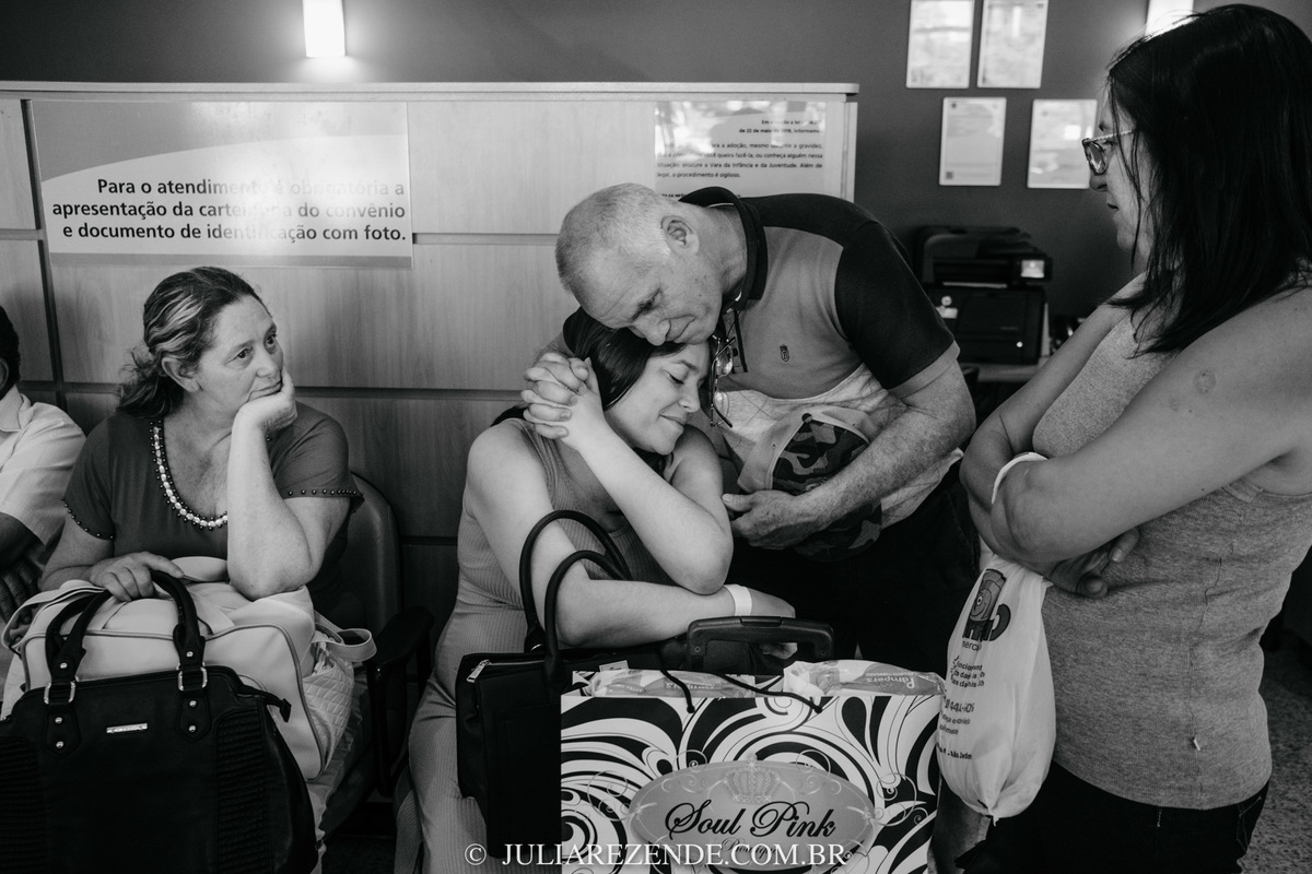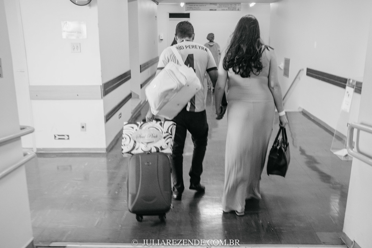 No dia determinado, desde as 7h da manhã, estávamos todos reunidos, aguardando o momento da cesariana. Embora eu não pudesse estar presente na sala de parto, isso não diminuiu a intensidade e a beleza do que foi capturado. Conseguimos registrar os momentos antes e depois do nascimento, capturando a expectativa palpável e a emoção transbordante.