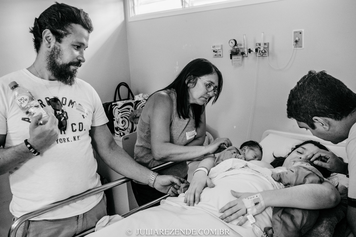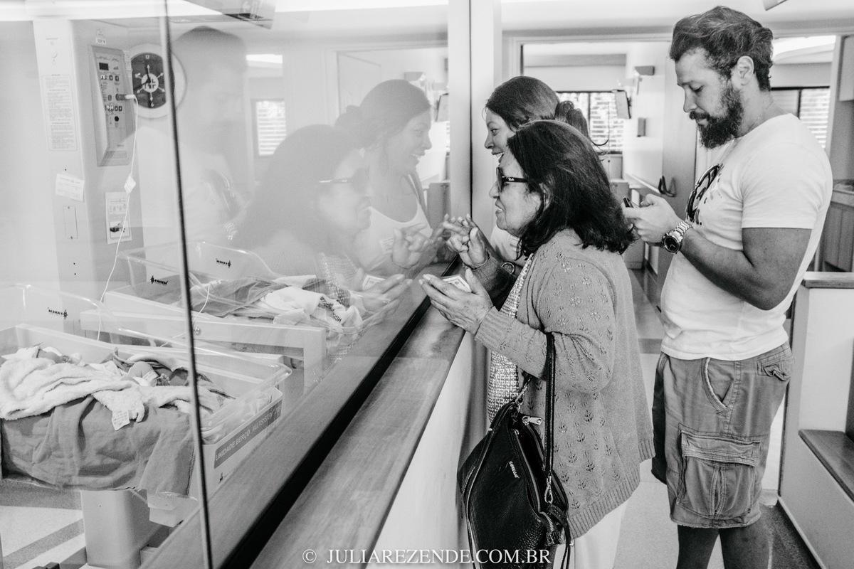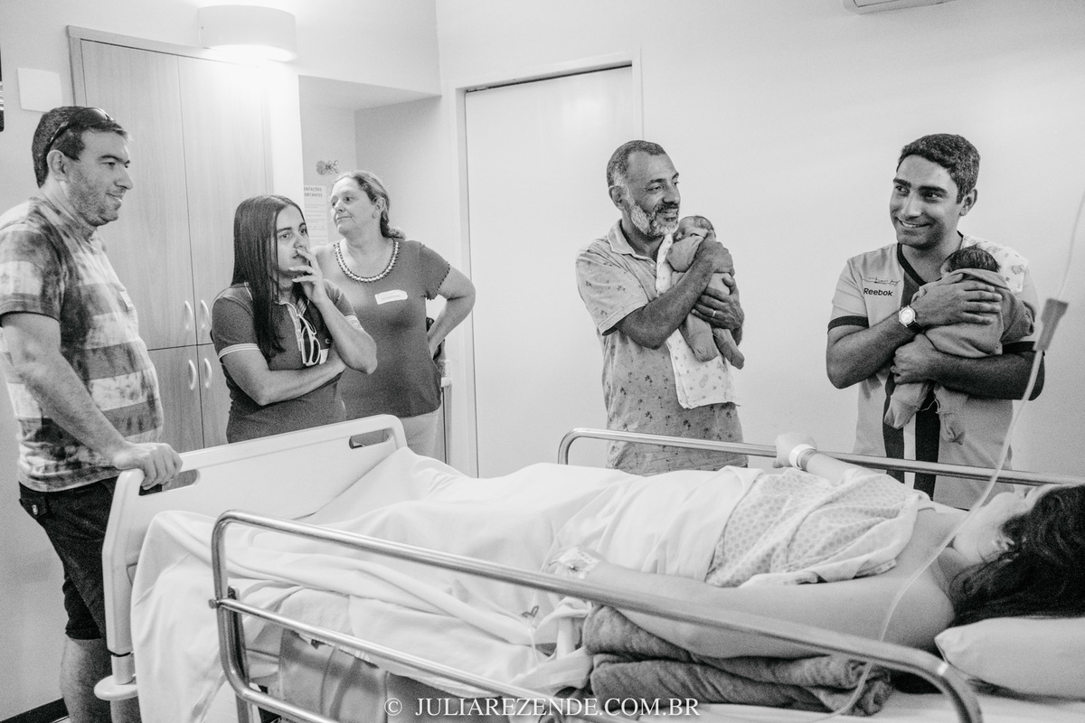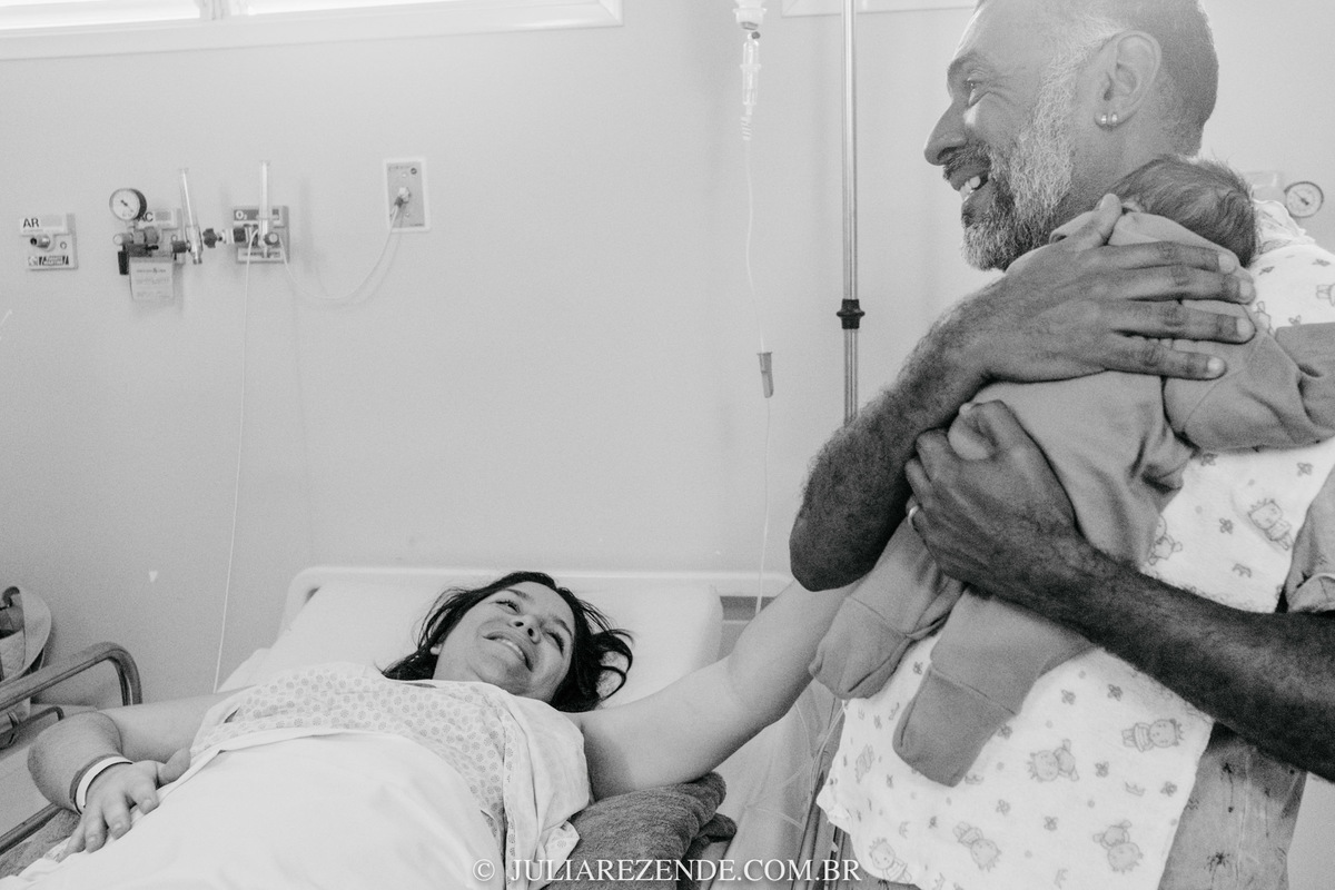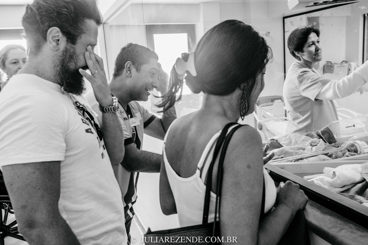 No dia determinado, desde as 7h da manhã, estávamos todos reunidos, aguardando o momento da cesariana. Embora eu não pudesse estar presente na sala de parto, isso não diminuiu a intensidade e a beleza do que foi capturado. Conseguimos registrar os momentos antes e depois do nascimento, capturando a expectativa palpável e a emoção transbordante.